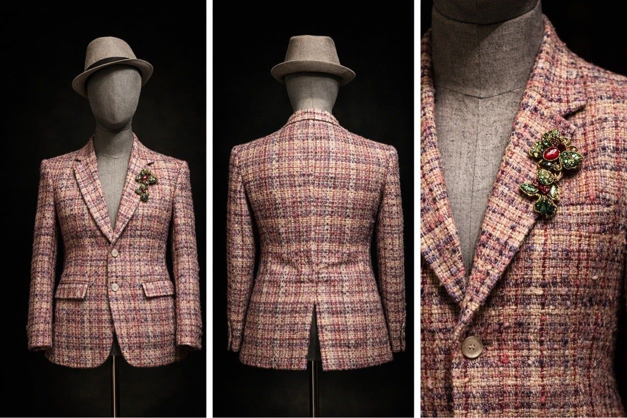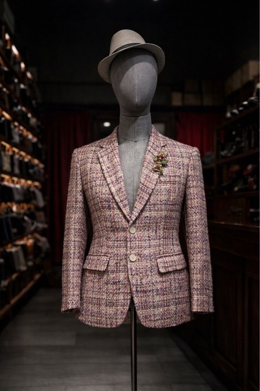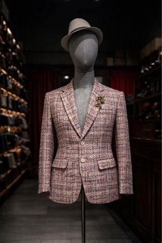 Áo blazer tweed nam với bề mặt dệt nhiều sợi màu đan xen, tạo hiệu ứng vải sống động và có chiều sâu. Phom áo ôm gọn thân người, vai dựng vừa phải, phù hợp mặc thường ngày hoặc phối cùng sơ mi khi cần chỉn chu hơn.
