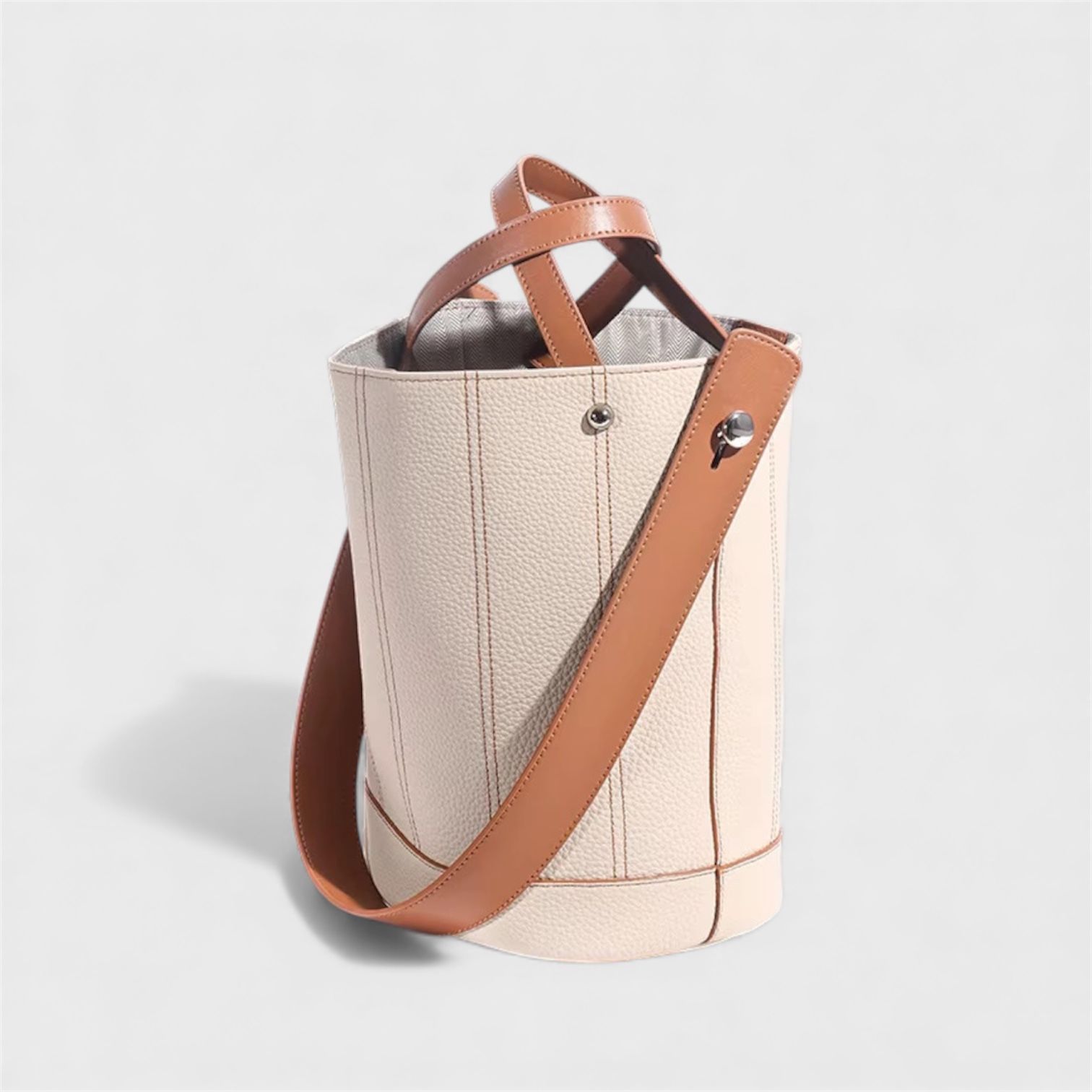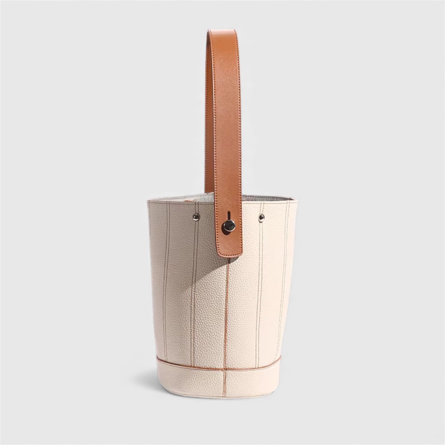 Chiếc túi bucket da bò dáng đứng mang tinh thần hiện đại và tối giản, phù hợp cho cả đi làm lẫn dạo phố. Form túi tròn đứng, mềm vừa phải, giữ phom tốt nhưng vẫn mang lại cảm giác thoải mái khi sử dụng.