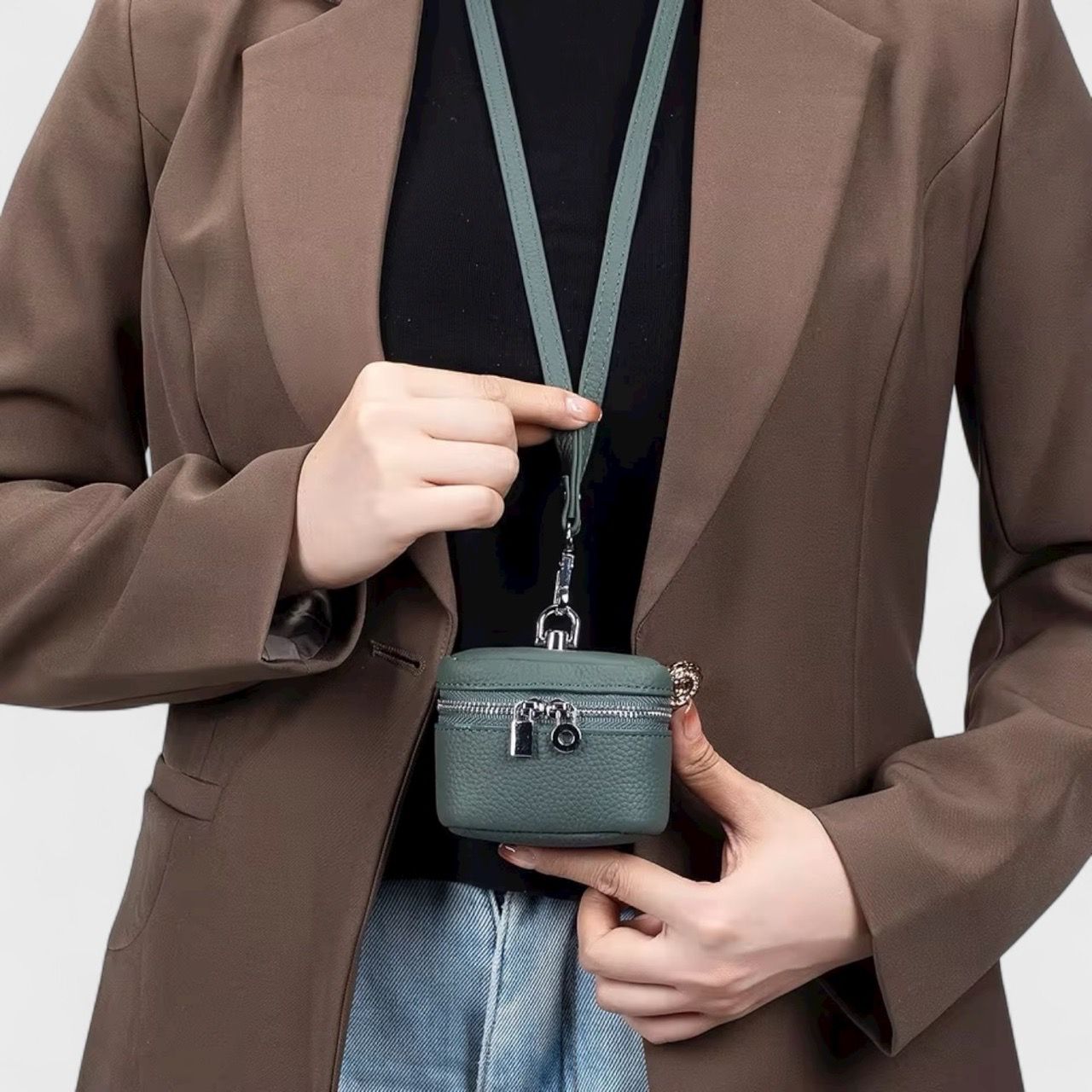 ✔ Thiết kế tròn nhỏ gọn, dễ phối cùng túi lớn hoặc mang riêng khi đi dạo.